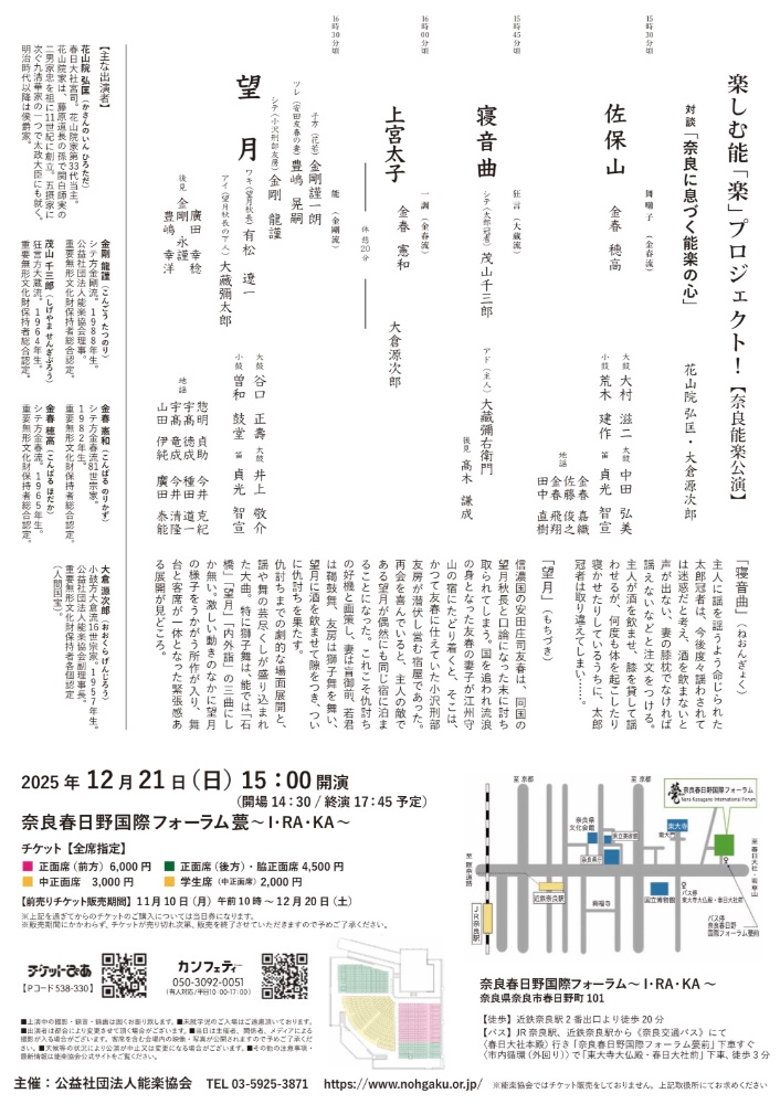奈良 能楽公演2025年12月21日(日)奈良春日野国際フォーラム 甍〜I・RA・KA〜15:00開演〜チケット〜カンフェティ050-3092-0051チケットぴあhttps://t.pia.jp/pia/event/event.do?eventCd=2540648