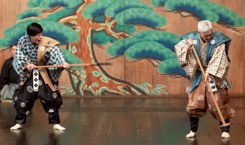 清水の縁日に、主人が太郎冠者に太刀を持たせて出かけます。参籠するうちに素破(すっぱ=詐欺師)が現れ、太郎冠者が寝ている隙に太刀を杖竹とすり替えてしまいます。帰る道々、太郎冠者は言い訳に成上がりの例を話し、太刀が杖になった事を切り出すのですが、、、縁日の賑やかさの中にのんびりとした様子も伺えます。「くちなわ」という言葉が出てきますが、蛇のことです。