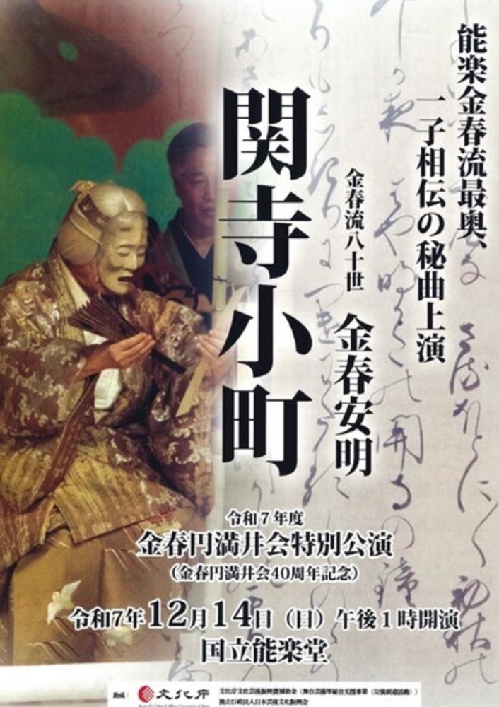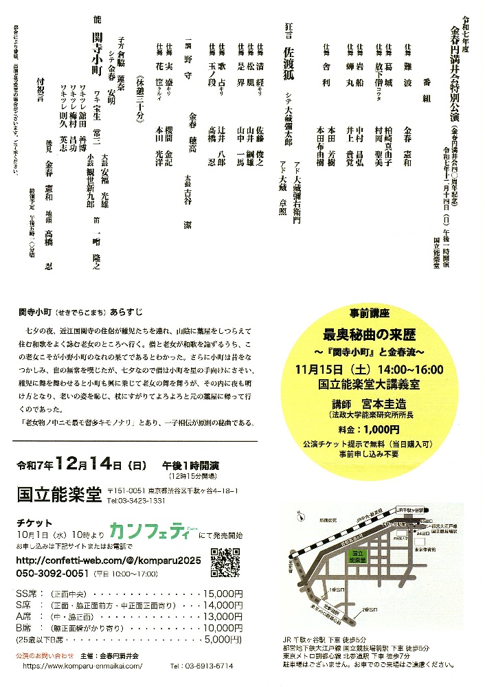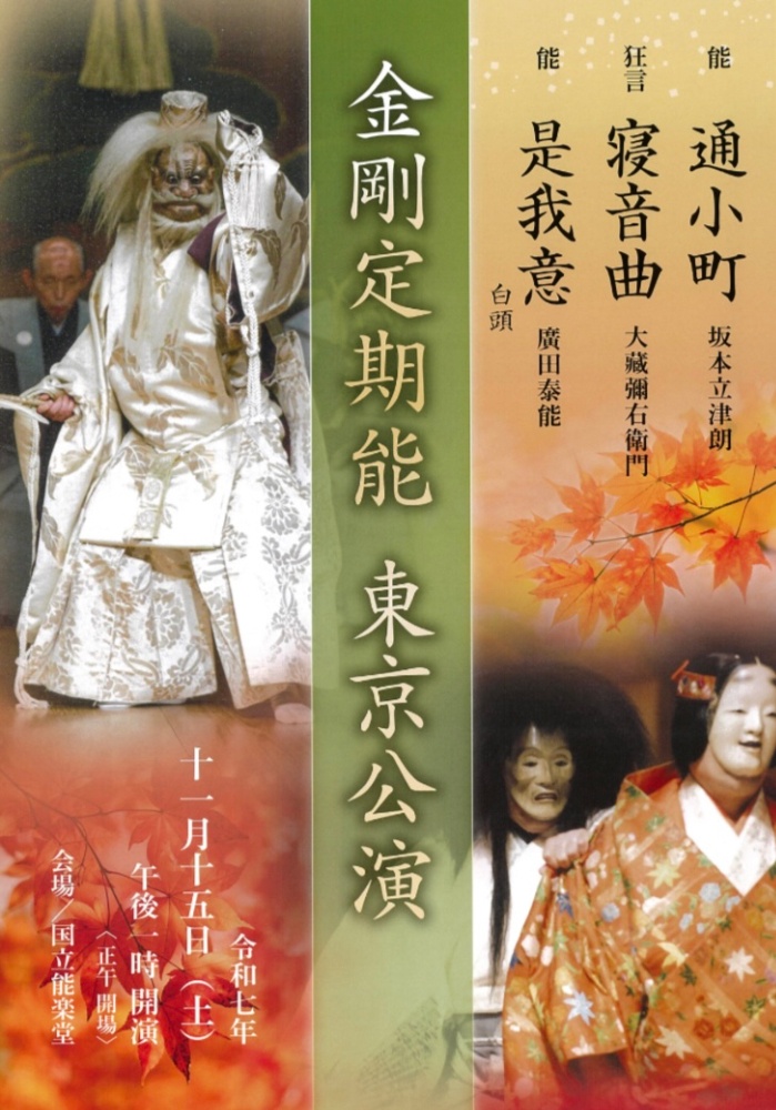 令和7年11月15日(土)13:00開演国立能楽堂チケットお申込み金剛能楽堂 075-441-7222チケットぴあ https://t.pia.jp/pia/event/event.do?eventCd=2533566