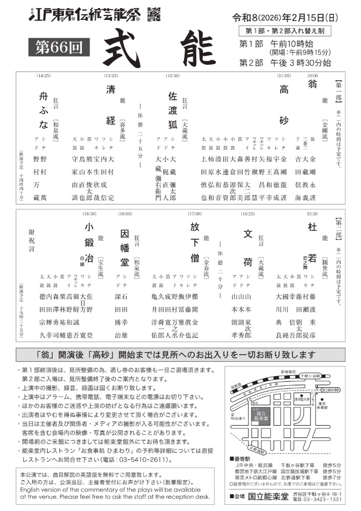 令和7年11月16日(日)14:00開演東急セルリアンタワー能楽堂