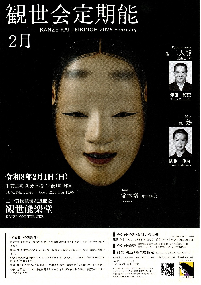 令和8年2月15日(日)国立能楽堂第1部 10:00始め第2部 15:30始め〜チケットお申込〜カンフェティ 050-3092-0051式能特設サイトhttps://www.nohgaku.or.jp/shikinoh2026